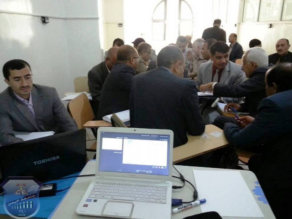 باشراف النائب الثاني عميد مركز الجودة د حفظ الله الاحمدي وخبير المناهج بوزارة التلعيم العالي والبحث العلمي البروفسور/ عبده مطلس يواصل المشاركون اعمال الدورة من خلال توزيعهم الى مجموعات تخصصية لاعداد مواصفات البرامج الاكاديمية وتشكيل فرق توصيف البرامج الاكاديمية للجامعة بهدف اعداد رسالة كل برنامج من برامج الجامعة وكتابة الاهداف لكل برنامج وتحديد خصائص الخريج المثالي ومميزاته وتحديد مخرجات التعلم المقصودة وترميزها وعكس ذالك على مستوى كل مقرر دراسي من مقررات كليات الجامعة.
